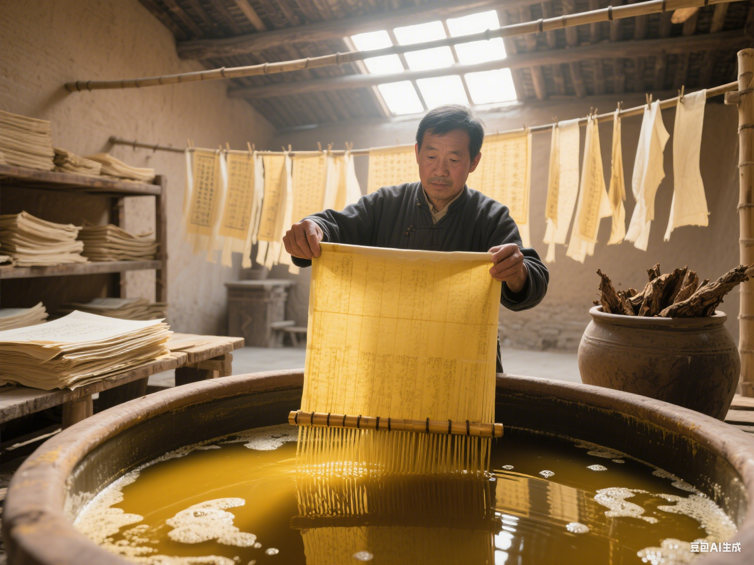唐代黃檗汁染紙并非簡單浸泡,而是形成一套適配檔案紙張的標準化工藝,流程可歸納為三步:第一步是“樹皮提取”,選取10年以上樹齡的黃檗樹皮,去除外層粗皮,將內層黃皮切碎,加水煎煮(唐代《齊民要術》雖未直接記載染紙,但提及黃檗“煮汁可染”,推測工藝類似),通過控制火候(文火慢煮2-3小時)與水量,濃縮汁液至黏稠狀,確保生物堿濃度達標;第二步是“紙張浸染”,將抄造完成的生紙(未經過度加工的紙張)放入黃檗汁中,反復浸漬2-3次,每次浸漬后撈出晾干,使汁液充分滲透紙張纖維,避免局部漏染;第三步是“固色加固”,對官府重要檔案用紙,會在染紙后涂抹一層稀薄的淀粉漿(以大米、小麥淀粉熬制),既增強黃檗汁在紙張上的附著力,防止褪色,又能填補紙張纖維間隙,提升紙張強度,減少磨損。這套工藝兼顧“防腐”與“實用”,讓染紙后的檔案既耐保存,又不影響書寫(淡黃色紙張不暈墨,字跡清晰)。?